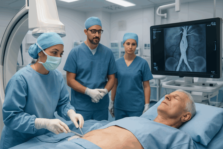 تعرف على علاج تمدد الأوعية الدموية في الشريان الأبهر البطني AAA في تركيا، واستكشف خيارات الجراحة المفتوحة والقسطرة EVAR المتاحة اليوم.